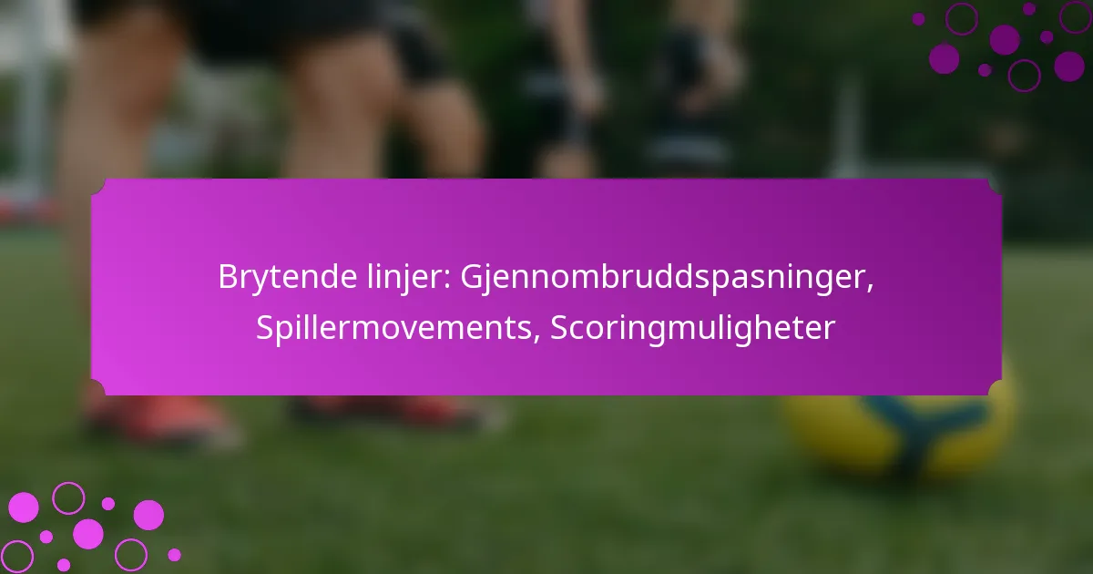 Å bryte linjer i fotball er essensielt for å omgå forsvar og skape scoringsmuligheter. Dette innebærer bruk av gjennombruddspassninger som retter seg mot rom bak forsvarerne, noe som gjør at spillerne kan avancere raskt. Effektiv spillerbevegelse forbedrer ytterligere denne strategien ved å skape plass og legge til rette for avgjørende pasninger, noe som til slutt øker sjansene for å score.