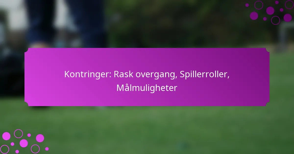 Kontringer i fotball er dynamiske spill som skjer umiddelbart etter at man har gjenvunnet ballbesittelse, designet for å utnytte motstanderens uorden. Denne strategien legger vekt på raske overganger fra forsvar til angrep, noe som krever at spillerne handler raskt og sammen for å skape scoringsmuligheter før motstanderlaget kan reorganisere seg. Hver spillers rolle er avgjørende i denne prosessen, med spesifikke ansvarsområder som øker effektiviteten av kontringen.